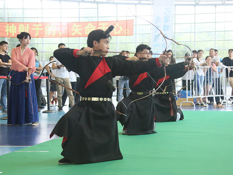 本次射箭体验活动体验区设置了8个靶位,为每位师生安排了专业人员负责手把手指导如何握弓、搭箭、开弓、放箭等一整套基础的射箭动作,确保活动安全。现场还设置了弓箭箭种展览,在此区域可看到不同用途的箭种分类,了解弓箭的相关知识。活动前还邀请到上海仁弓堂射艺队为师生带来传统弓箭的射艺,以及射箭不同阵仗和射姿变化的展示,现场展示古老的传统弓射箭技艺,让在场师生对射箭运动有了更加直观的感受。