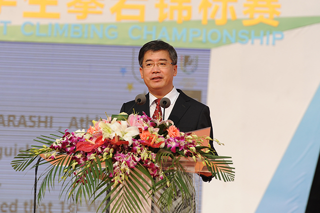 朱民代表学校对参赛运动员取得的优异成绩表示祝贺,向本次大赛的裁判员、运动员、志愿者以及工作人员们表示感谢。他说,世界大学生攀岩锦标赛是全球青年攀岩运动爱好者的体育盛会,是多元文化交融的平台。激烈的比赛不仅鼓舞了年轻的大学生们,更在塑造健康人格、丰富校园文化和打造大学精神中发挥了积极的作用。东华与此次攀岩赛的拥抱是历史性的,她成就了青春的体育盛会,凝聚了永恒的美好记忆,也必将留下了宝贵的精神财富。