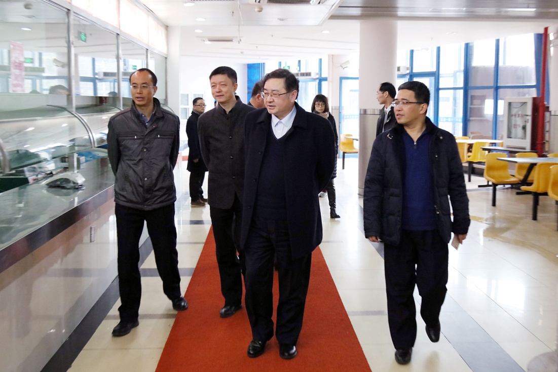 蒋昌俊一行来到教室、实验室、学生宿舍、食堂等处,仔细察看教学、生活等各项服务设施,与师生亲切交谈,关心询问工作与生活需求以及对新学期工作的期待。蒋昌俊一行还专门来到在建的复合材料协同创新中心大楼工地,了解工期进展情况。