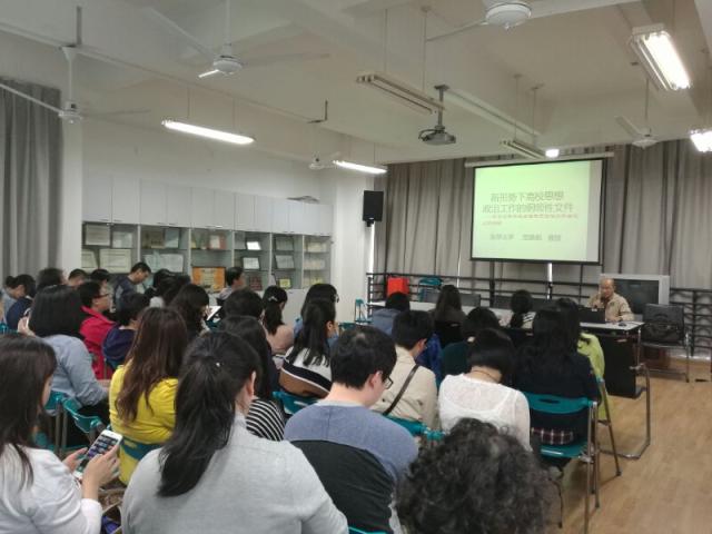 2017年5月,学院邀请贺善侃教授为全体教师作题为“新形势下高校思想政治工作的纲领性文件——学习习近平总书记在全国高校思想政治工作会议上的讲话精神”辅导讲座。贺善侃教授从此次会议的重要历史意义、为什么要加强高校思想政治工作、高校老师如何在思想政治教育中发挥作用三个方面,一步步深入浅出地解读全国高校思想政治工作会议精神。他说,立德首先立师德,树人首先树人师。他提出要从爱岗敬业精神、教书育人水平、为人师表的言行、教学作风等四个纬度加强师德建设,推进青年教师的思想政治教育工作。