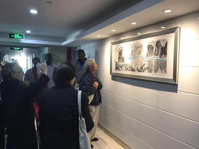 10月30日,留学生公寓文化建设暨重阳节座谈会在延安路校区国际文化交流学院举行,校退休职工霜叶书画社的18位退休老师参加此次活动。学校原党委副书记、退管会第一副主任王以刚,退管办主任宋敏,国际文化交流学院副院长吴小军出席交流活动并讲话。