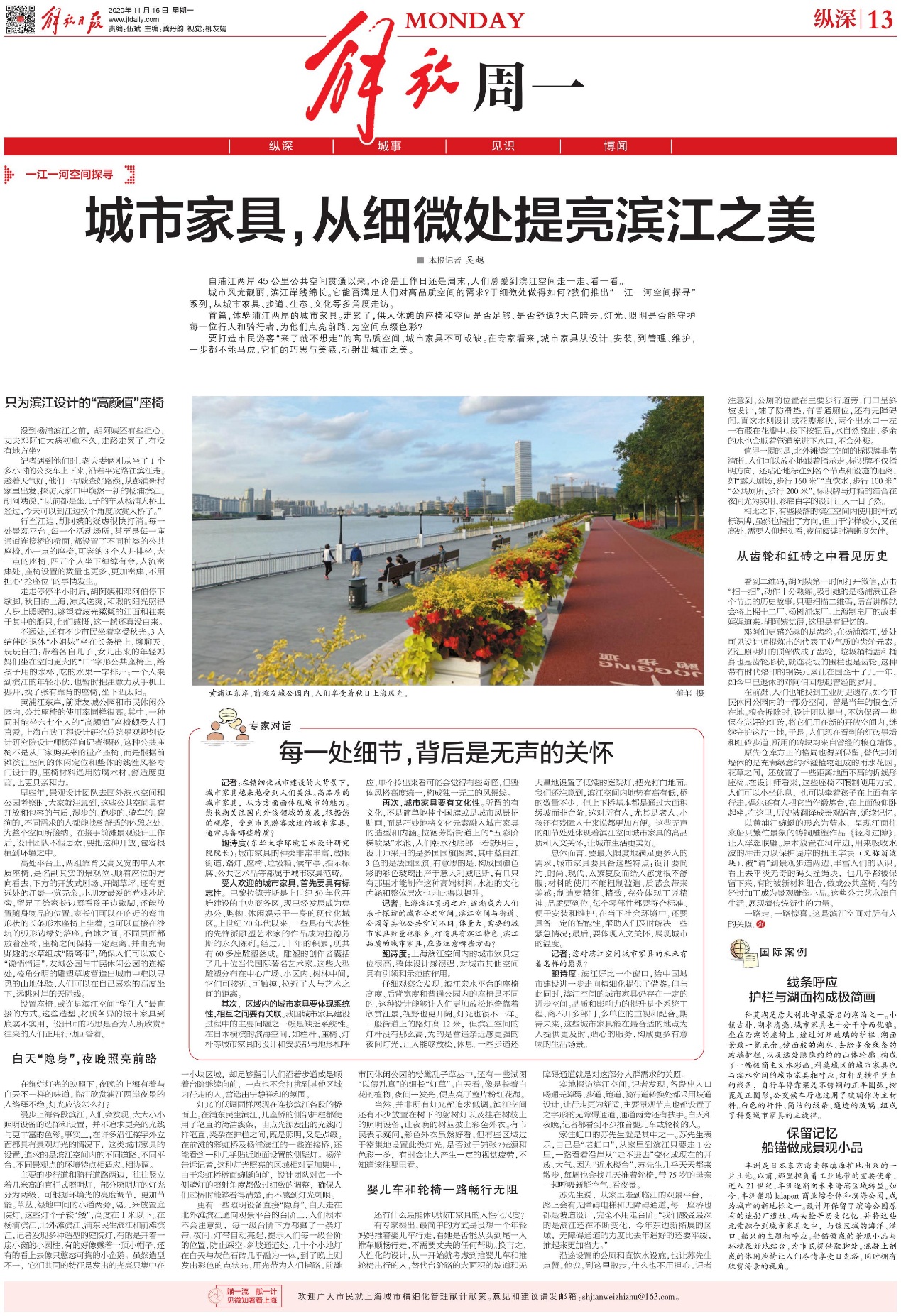 2020年11月16日《解放日报》第13版登载了记者采访久久久久国产成人精品亚洲综合环境艺术设计研究院院长鲍诗度教授的专家对话,发布题为《城市家具,从细微处提亮滨江之美》的文章。