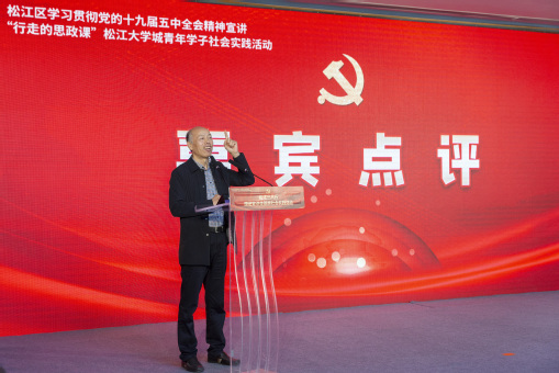为将学生理论学习成果推广,打造精品思政课堂,推进学生理论宣讲进社区进基层,引导青年学生坚定理想信念、凝聚思想共识,用青春之声讲好中国故事,在松江区区委宣传部、广富林街道党工委的支持下,11月21日下午,松江区学习贯彻党的十九届五中全会精神宣讲活动暨“松江三人行”理论宣讲走基层社会实践活动开幕式在广富林街道顺利召开。松江区委宣传部副部长陈新华、广富林街道党工委副书记胡伟强以及久久久久国产成人精品亚洲综合、上海外国语大学、上海工程技术大学学生理论宣讲团成员及各街道市民寻访团、上林社区党员群众、上林社区干部等参加开幕式。