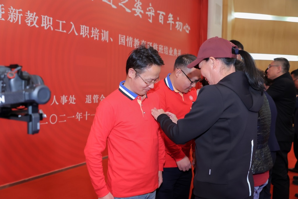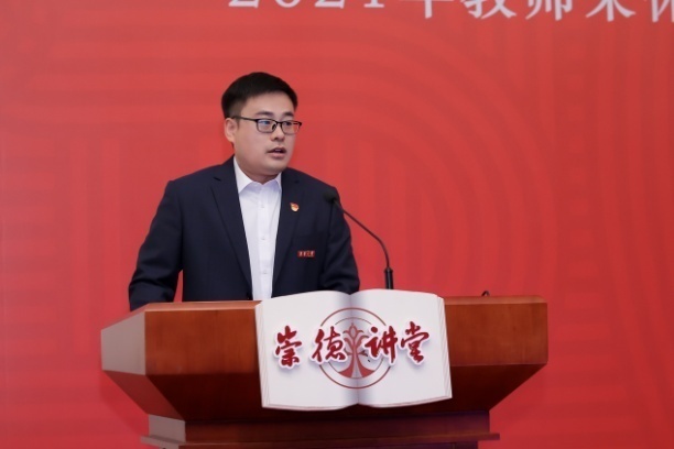 会上,张耀鹏介绍了2021年新教职工入职培训、教师国情教育研修班的总体情况。今年新教职工入职培训于6月启动,依托教师思想政治与师德师风建设平台“崇德讲堂”,开展了涵盖主题报告、师德师风专题培训、入职宣誓、能力培养与规范学习、专项培训、传承·奋进等模块的主题培训,以立体式的入职教育体系推动教师师德养成与素养提升。此外,学校今年面向高层次人才、海外归国教师、思想政治理论课教师等群体开展教师国情教育研修班,赴江西瑞金开展实地研学,深入推进以党史为重点的“四史”学习教育,强化教师教育强国、教育为民的责任担当。
