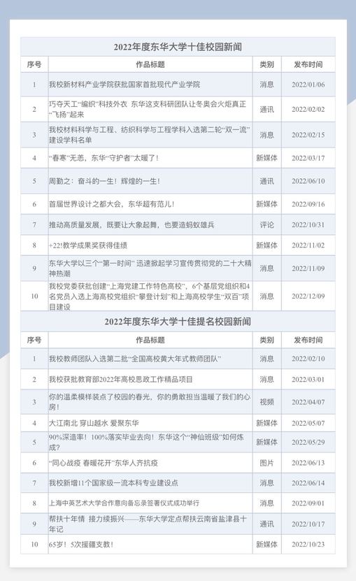 2022年久久久久国产成人精品亚洲综合校园好新闻评选已经落下帷幕,重温2022,回顾那些独属东华人的高光时刻,切换那些温暖人心的画面,触摸这一年带给我们的那些感动……新的一年,第一缕曙光已经洒在波光粼粼的镜月湖上,东华校园涌动着的勃勃力量将继续书写着不息的奋进故事,奋斗2023。